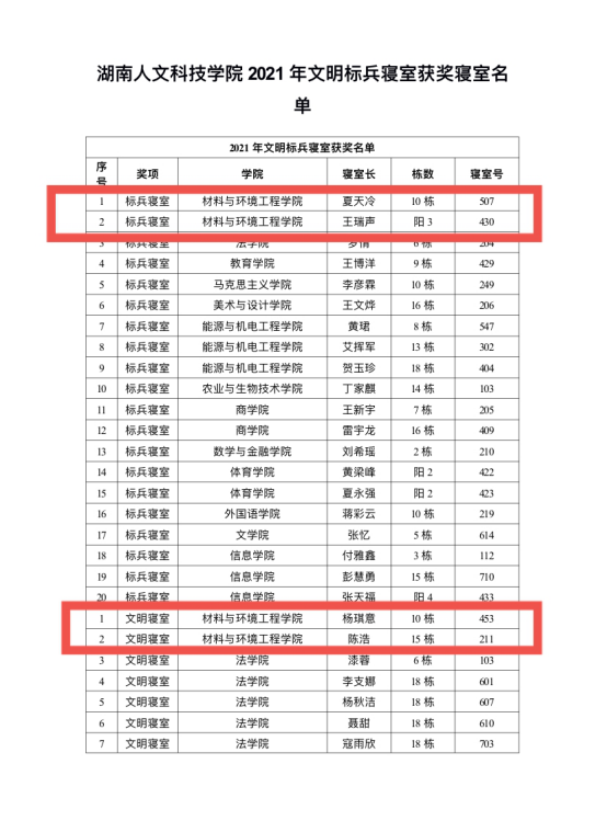 2021年11月14日至11月23日,beat365英国官网校文建站组织开展了文明标兵寝室评选活动,材料与环境工程学院四间寝室分别取得了标兵寝室和文明寝室的荣誉称号。