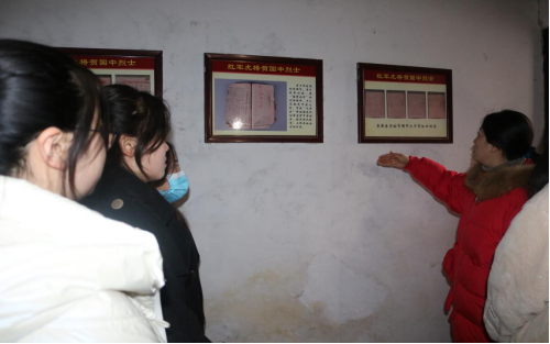 在贺国中铜像前,全体人员三鞠躬向革命先烈寄托追思,深切缅怀革命先烈的丰功伟绩。走进贺国中故居,大家透过一张张有深刻历史印记的图片和文物,追忆贺国中同志的生平事迹,感受其伟大的人格魅力、坚定的革命信仰和对党忠诚、勇于担当的大无畏革命精神。陈书记也通过带领大家参观贺国中故居,为同学们讲述了贺国中一生短暂而光辉的革命事迹。