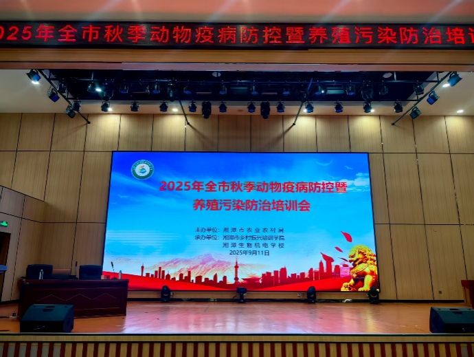9月11日,由湘潭市农业农村局主办的2025年全市秋季动物疫病防控暨养殖污染防治培训会议,在市乡村振兴培训学院开班。来自各县市区、乡镇和市农业农村局系统相关单位的负责人、技术骨干参加培训。湘潭市生态环境局特邀材环院环境工程专业蔡意祥博士参与会议,专题讲授生猪养殖废水处理及液污资源化利用。