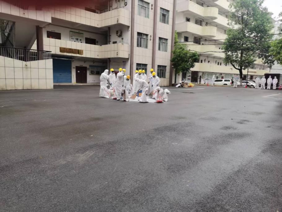 本次演练模拟场景为材环院院转运实验室废液过程中意外泄漏的学院级一般突发环境事件。发生险情后,危废转运人员立刻进行应急处置,并按应急预案报送情况。随着学院应急预案启动,学院分管领导、实验室主任、危废管理员及各应急小队迅速反应,各司其职,紧急赶赴现场开展应急工作。因泄漏现场离雨水沟较近,实验室废液有流入雨水沟、污染周边水体风险,应急处置组紧急使用生石灰,沙土洒在废液上,用铲子把处置物铲入收集容器。最终,事故现场水质监测数据正常,突发环境事件得到妥善有效处置。至此,事件应急响应终止,演练圆满结束。