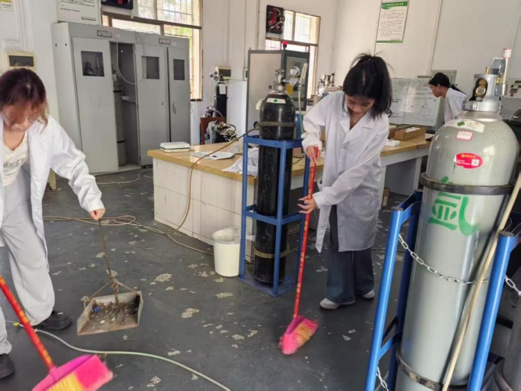 活动开始前,青工部负责人对实验室清扫工作进行了详细安排,依据实验室功能区域划分任务小组,明确各小组清洁重点与要求,确保清扫工作高效有序开展。在实践过程中,入党积极分子们展现出高度的责任感与协作精神:手持抹布和清洁剂,仔细擦拭实验台残留试剂与污渍,顽固处反复处理;另一边扫帚配合簸箕,清扫地面碎屑、灰尘,连桌底墙角也不放过。经过数小时的共同努力,实验室面貌焕然一新,实验设备摆放整齐规范,操作台面洁净如新,环境干净整洁。