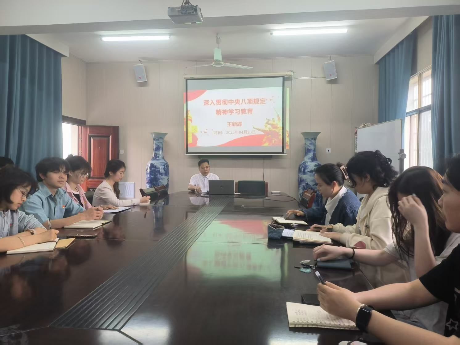 学习教育活动最后,党总支副书记王新辉再次强调,全体学生党员要充分认识到深入贯彻中央八项规定精神学习教育的重要性和紧迫性。作为学生党员,要在日常学习和生活中以身作则,严格要求自己,坚决抵制各种不良风气。在学校全力推进高质量发展和迎接本科评估的关键时期,学生党员更应发挥先锋模范作用,以优良的作风和积极的态度,带动身边同学共同进步,为营造风清气正的校园环境贡献力量,为推动学校高质量发展和顺利通过本科评估添砖加瓦。