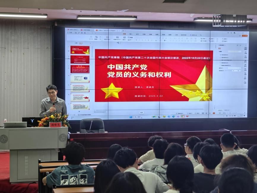 4 月 22 日,beat365英国官网党委委员、副校长谭峰亮为学员们讲授 “中国共产党党员的权利与义务”,清晰阐释党员义务与权利的相辅相成,强调党员履行责任、发挥作用对推动党的事业发展的重要意义,让学员们对党员身份有了更深刻的认识。