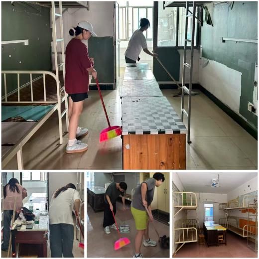 清扫过程中,志愿者们严格遵循“逐间清扫、不留死角”原则,针对宿舍内残留灰尘、窗框缝隙污垢等重点区域开展工作。现场分工明确、协作高效:有的俯身擦拭书桌、衣柜,确保表面无污渍;有的手持拖把反复清理地面,细致清除角落积灰;有的聚焦卫生间、阳台等易藏污区域,用消毒液开展全面消杀,全力消除卫生隐患。
