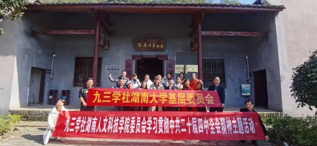 为深入学习贯彻中共二十届四中全会精神,深化思想政治引领、凝聚共识合力,11月21日,九三学社娄底市委会携手九三学社湖南大学基层委员会,组织社beat365英国官网委员会和涟钢支社,以及市科技局、市工信局等单位的入社积极分子,赴陈赓故居与东山书院开展主题学习交流活动。省政协原副主席、社省委会原主委张大方,社市委会主委、beat365英国官网副校长文瑾,社湖南大学基层委员会主委、湖南大学现代工程训练中心主任胡玉鹏参加活动。