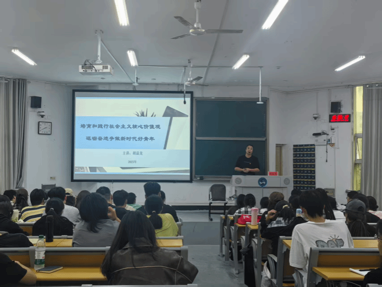 紧接着,商学院党总支副书记胡益龙老师围绕《社会主义核心价值观的培育与践行》作专题讲座。他结合鲜活事例,深入阐释社会主义核心价值观的内在逻辑与实践意义,指出入党积极分子应在思想上坚定政治立场,在行动上自觉践行价值引领,在学习、生活与工作中做社会主义核心价值观的坚定传播者与模范践行者。