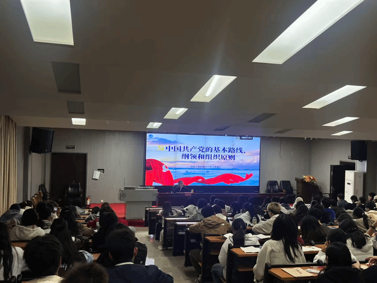 10月21日,信息学院党总支副书记朱舒腊老师以《中国共产党的基本路线,纲领和组织原则》为题,为学员深入解析了党的基本路线、基本纲领和基本原则。她指出,党在社会主义初级阶段的基本纲领,是建设中国特色社会主义事业的总体布局和行动指南,涵盖经济、政治、文化、社会和生态文明建设等方面,是实现中华民族伟大复兴的根本遵循。