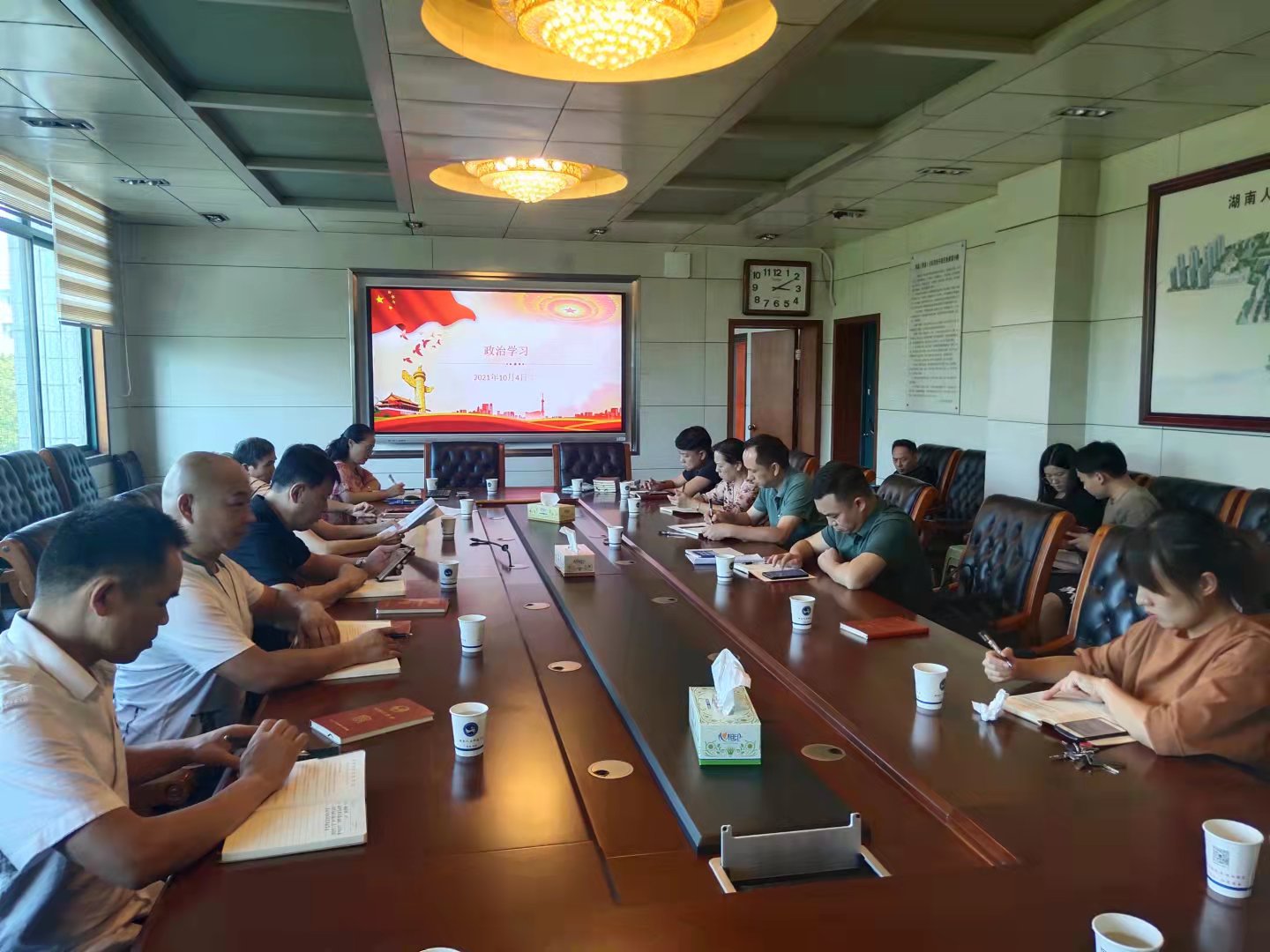 10月4日下午,党政办党支部政治学习暨巡察问题整改工作部署会在明德楼第一会议室召开。党政办主任易俊就巡察问题整改工作作动员部署,督查处干部杨丽英领学,党政办副主任彭正华主持会议。党政办和督查处全体干部职工参加会议。