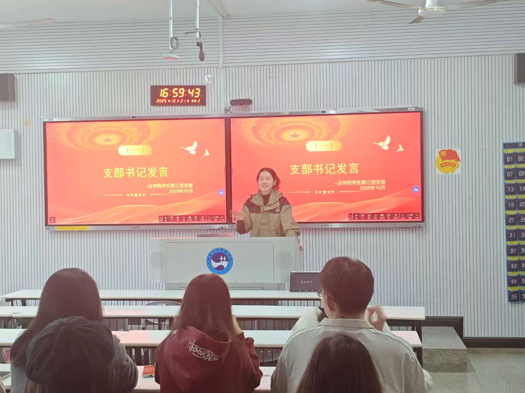 10月14日,法学院学生党支部在致远楼303教室组织政治理论学习,开展以“弘扬伟大抗战精神,加强廉洁文化建设,构建廉洁校园”为主题的政治理论学习,活动由各学生党支部书记主持,全体党员共同参与。