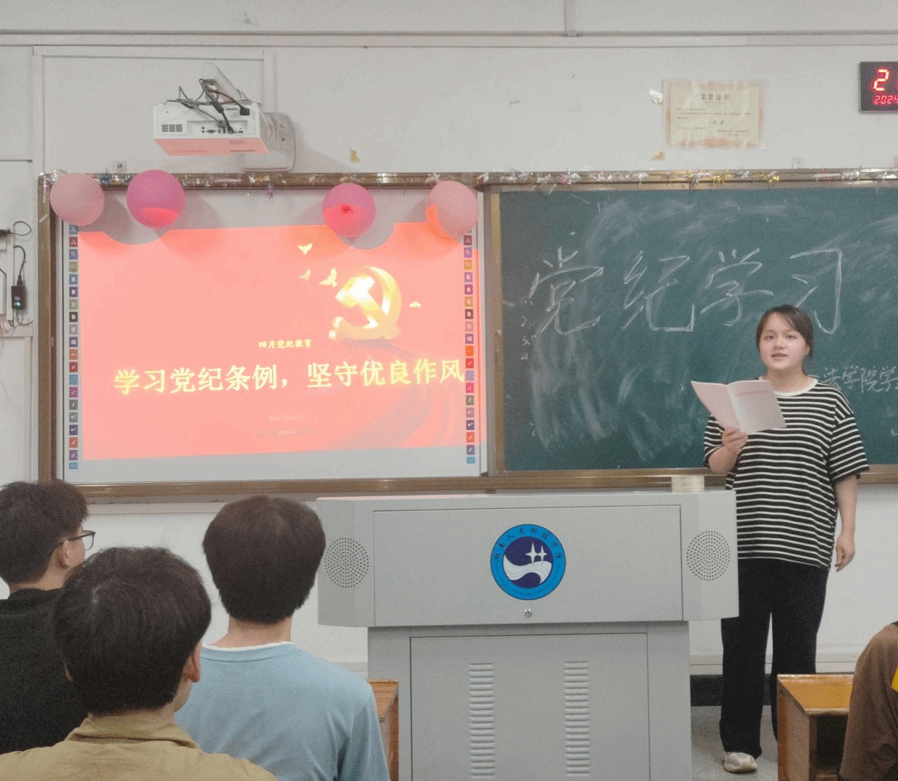 为深入学习贯彻新修订的《中国共产党纪律处分条例》,进一步推动我院学生第三支部党员学纪、知纪、明纪、守纪,强化遵守纪律的自觉性,法学院学生第三党支部于2024年4月29日在致远楼310召开了党纪学习专题会议。会议由党支部书记廖俊宏主持,第三支部学生在校党员全员参加。