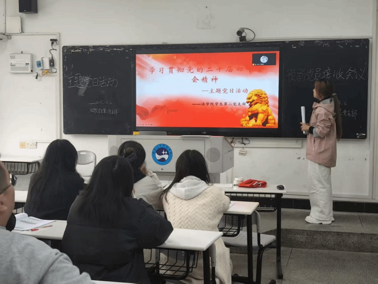 为深入学习贯彻党的二十届四中全会精神,进一步提升党员的理论素养,12月2日,法学院学生党支部在致远楼组织开展专题学习。