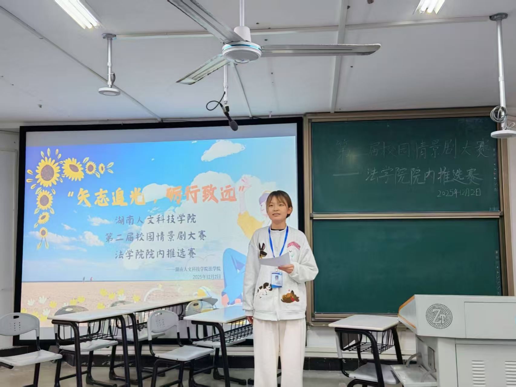 12月2日下午,法学院第二届情景剧大赛院内推选赛在致远楼301教室顺利举办。学工办主任陈玲,辅导员吴佳琪、羊哲思,学生会主席团成员及各部门部长共同参与本次活动。此次比赛聚焦“青春叙事+专业底色”,多支参赛队伍携原创剧本登台,以生动表演诠释青春创意与专业思考。