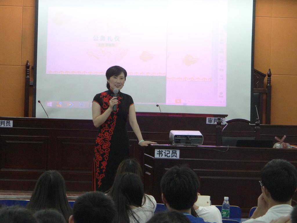 五月二十五日的晚上七点半倾听罗敏芳老师亲授礼仪课,我们荣幸之至,荣幸之余,我们同学们也带着深刻的思考与感慨。罗老师以一身象征着中国最高礼仪的旗袍出席,让我们亲观礼的文化,亲享礼的魅力,更以一种激昂慷慨而又不失氛围的方式与我们同学们交流互动,同学们更是热情高涨,配合老师,争先抢答问题,竞先分享自己在生活中遇到有关于礼的困惑与感受,不可谓之“以礼相待”,也可言之“盛情难却”了。罗老师呢,当然不可谓不阅历丰富,她多以自身所体会到的实例,或是深究所获的心得,来向同学们诠释施礼需适景、适人、也适度,方为最好;遇无礼之徒,不以无礼而还之,而以礼感化,方为礼之最豁朗的至高境界。此次讲座对于悉听的同学们来说,如沐春风便化雨,润物于无声,受益良多。
