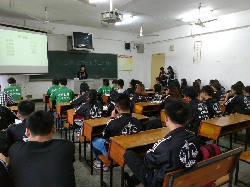 2017年4月27日下午6点20,法学院学生分会本学期第三次例会在致远楼303召开。本次例会由秘书处干事贺倩、刘冬艳主持。出席本次例会的有学生分会全体干事,各部门部长以及两位分会主席。
