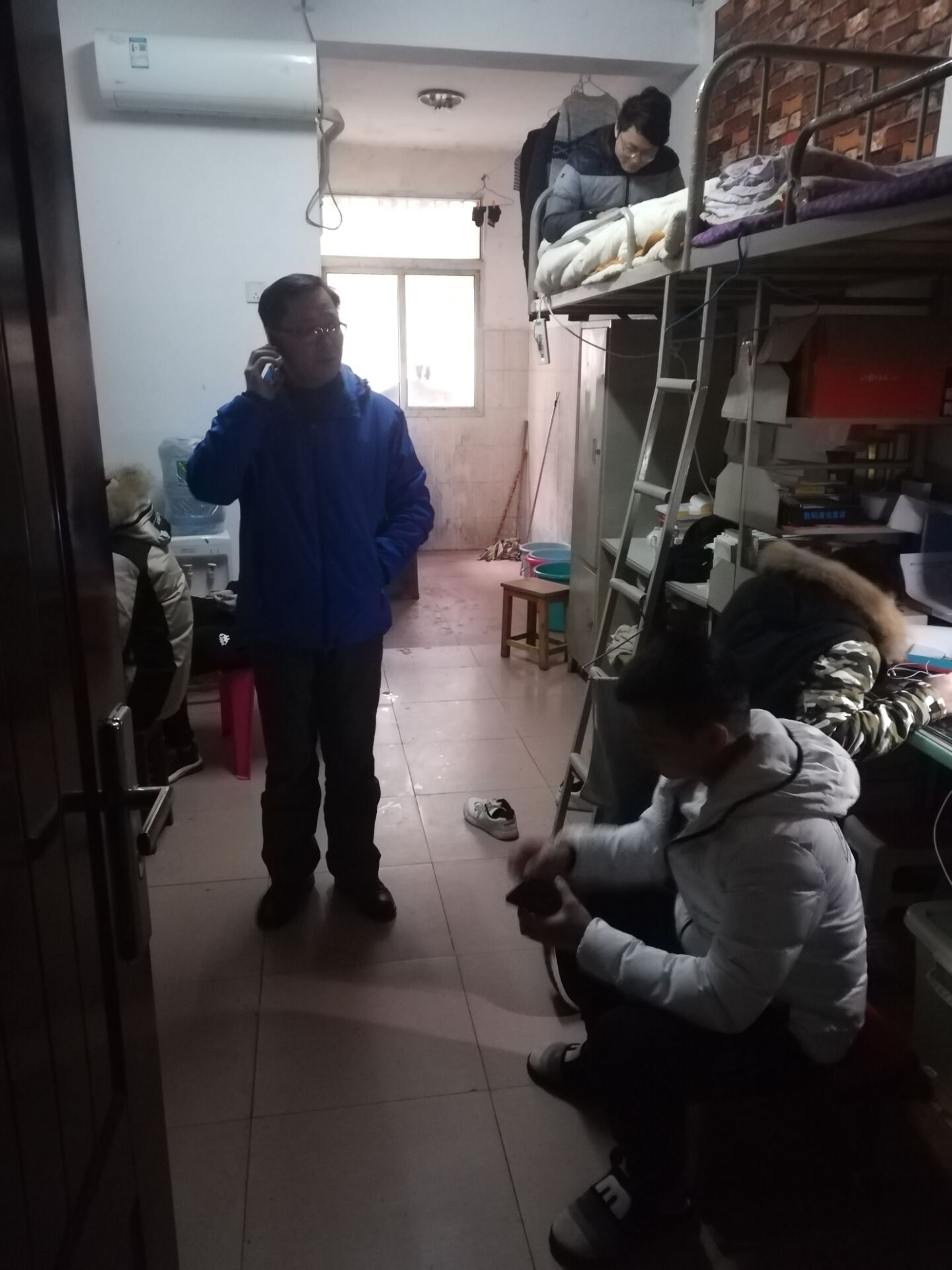 尹钟宏书记提前来到阳光公寓查寝,随后刘依归书记与宋元烨、唐全民老师领着分会的部长与干事分别来到了阳光公寓与三栋。期间,两位老师对同学们的安全问题非常关注,询问同学们到校的情况。同时指出,同学们要在新学期里注意宿舍用电、防火等问题,保护好人身与财产安全。