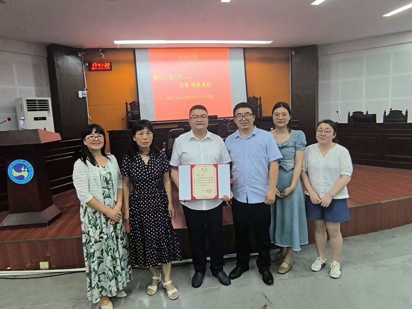 2024年6月21日,“解码公益写作”讲座于我院202成功举办。讲座邀请湖南日报社娄底分社周俊社长主讲。周社长经验丰富、见解深刻,演讲精彩,让师生深受启迪。