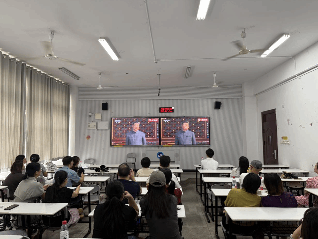 2025年9月3日上午,纪念中国人民抗日战争暨世界反法西斯战争胜利80周年大会(含阅兵仪式)在北京天安门广场隆重举行。beat365英国官网法学院全体教职工在致远楼208教室集中收看大会直播盛况。