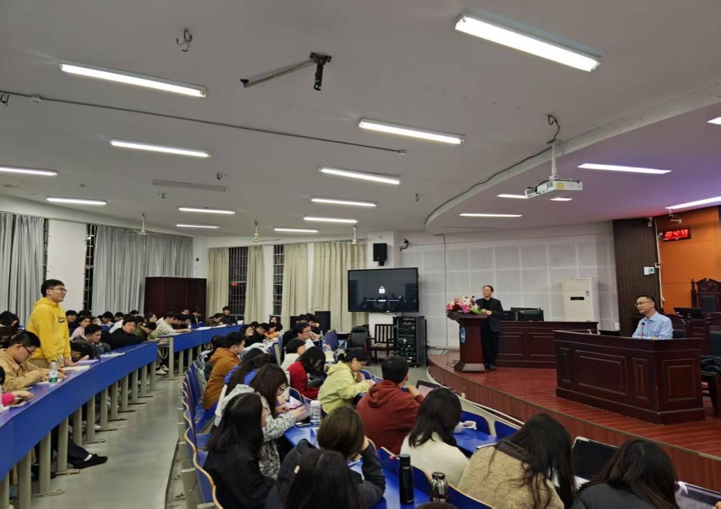 傅曦林教授以“一个转股的故事”为切入点,围绕诉讼时效、承债式收购、商事仲裁等知识点,结合仲裁案件的程序波折与法律难点,解析商事思维本质,帮助学生理解法律规则与商业逻辑的融合。互动环节中,他对学生的各类提问给予了耐心与专业的解答,循循善诱的态度极大调动了大家的积极性,现场举手提问不断,气氛热烈而融洽。