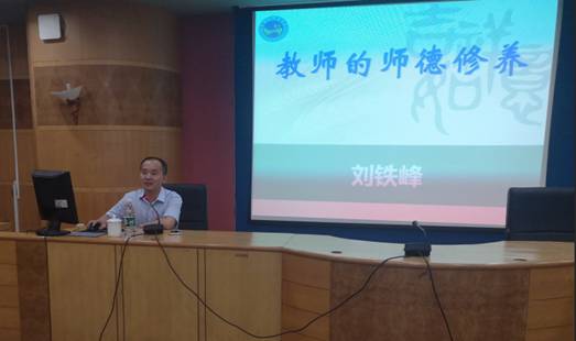 刘铁峰从三个方面进行了阐述:一是师德的内涵及其特殊属性;二是教师道德失范典型案例及定性分析;三是教师的职业道德规范与养成。整个报告持续90多分钟,会场秩序好,老师们说,报告内容丰富,理论性、实践性强,接地气、很实在,这样的报告有意义、有成效。