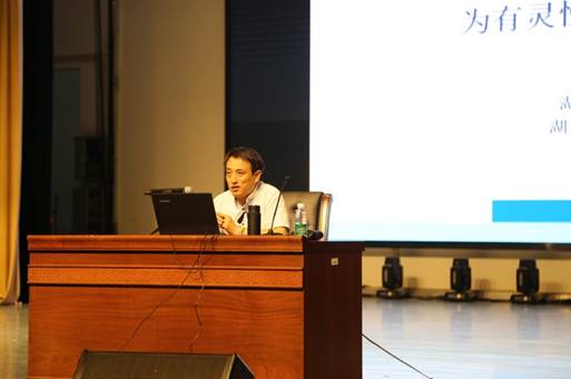 刘旭教授首先做《为有灵性的教学而努力》主题报告。他提出有灵性的教学就是“老师的教有灵性与学生的学有灵性”,然后从形象是有灵性教学的外在基础,思想是有灵性的魂,互动是有灵性教学的动态表现,机动是有灵性教学的补缺,有成是灵性教学的实在表现等五个方面进行了生动阐述。
