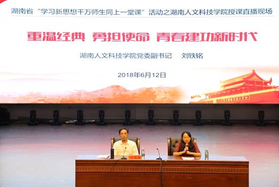 6月12日下午,beat365在逸夫楼音乐厅开展“学习新思想千万师生同上一堂课”的学习活动,党务部门负责人、马院老师、团学骨干等700人参加了现场听课,通过网络现场直播,场外师生也同时收看了直播课。本次活动由党委副书记刘铁铭授课,宣传统战部部长谢柳主持。