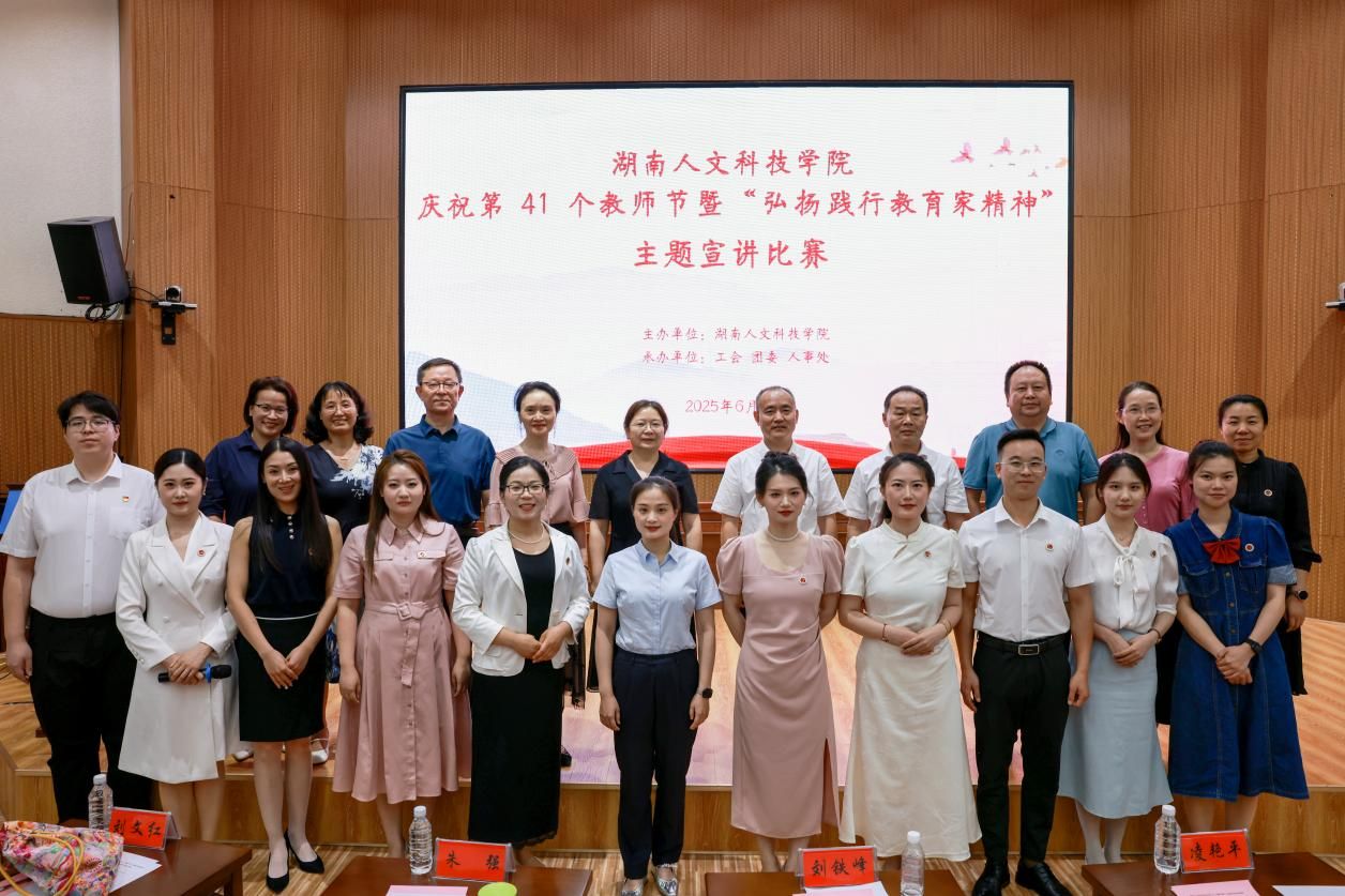 为大力弘扬践行教育家精神,涵养尊师重教浓厚氛围,激励学校广大教师和教育工作者学习、传承、践行教育家优秀品质与教育理念,提升教育教学质量与水平。6月5日晚,“弘扬践行教育家精神”主题宣讲决赛在匠成楼报告厅举行。校领导刘铁峰、朱强、凌艳平出席活动,各分工会老师及学生代表300余人现场观看比赛。
