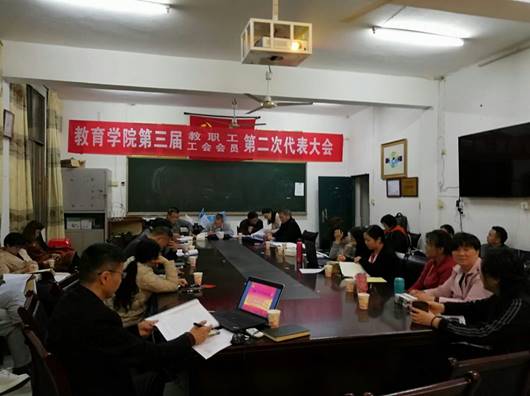 2018年4月26日晚上,我院在甘澍楼召开第三届教职工暨工会会员代表大会第二次会议。会议由院分工会主席徐建东主持,院党总支书记申忠明致开幕词。