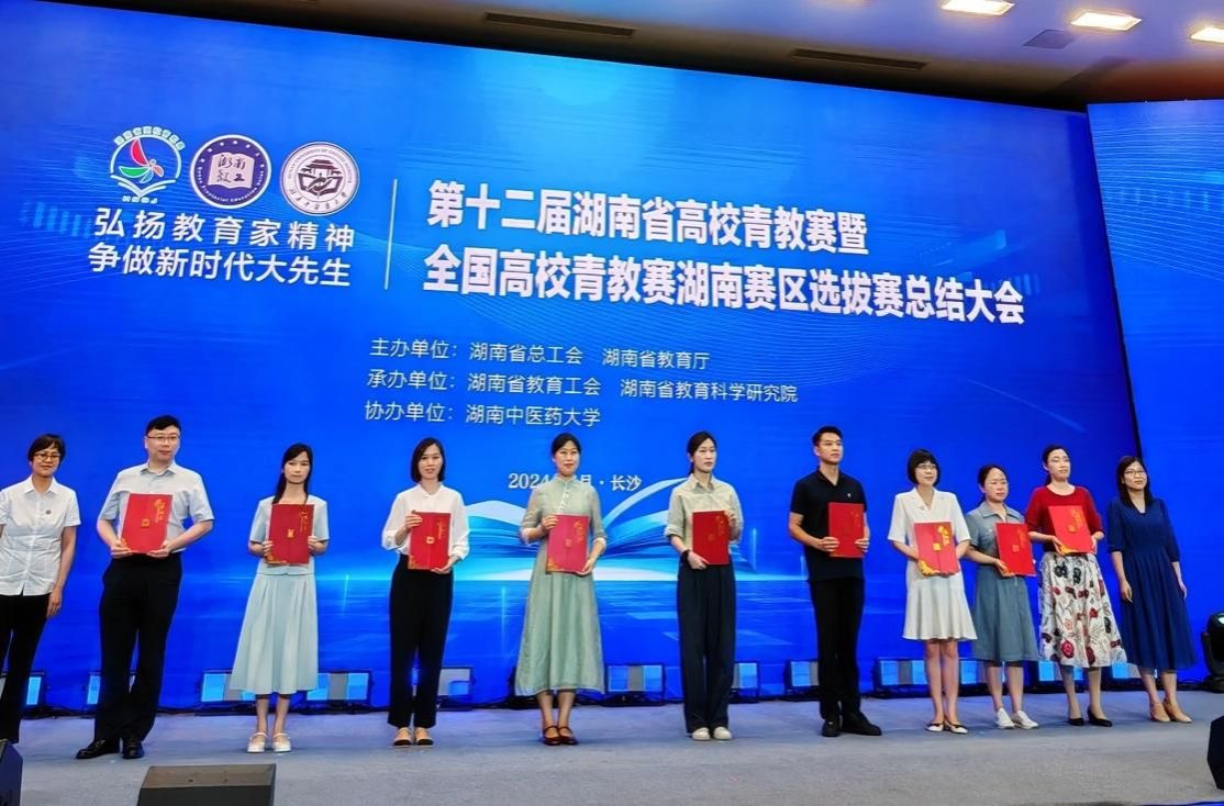 6月24日,备受瞩目的第十二届湖南省高校青年教师教学竞赛暨全国高校青年教师教学竞赛湖南赛区选拔赛在湖南中医药大学圆满落幕。本次大赛由湖南省总工会和湖南省教育厅联合举办,湖南省教育工会和湖南省教育科学研究院承办。今年1月以来,全省52所高校数千名青年教师经历校级初赛、省级复赛和现场决赛后,最终角逐出一等奖35人,二等奖55人。