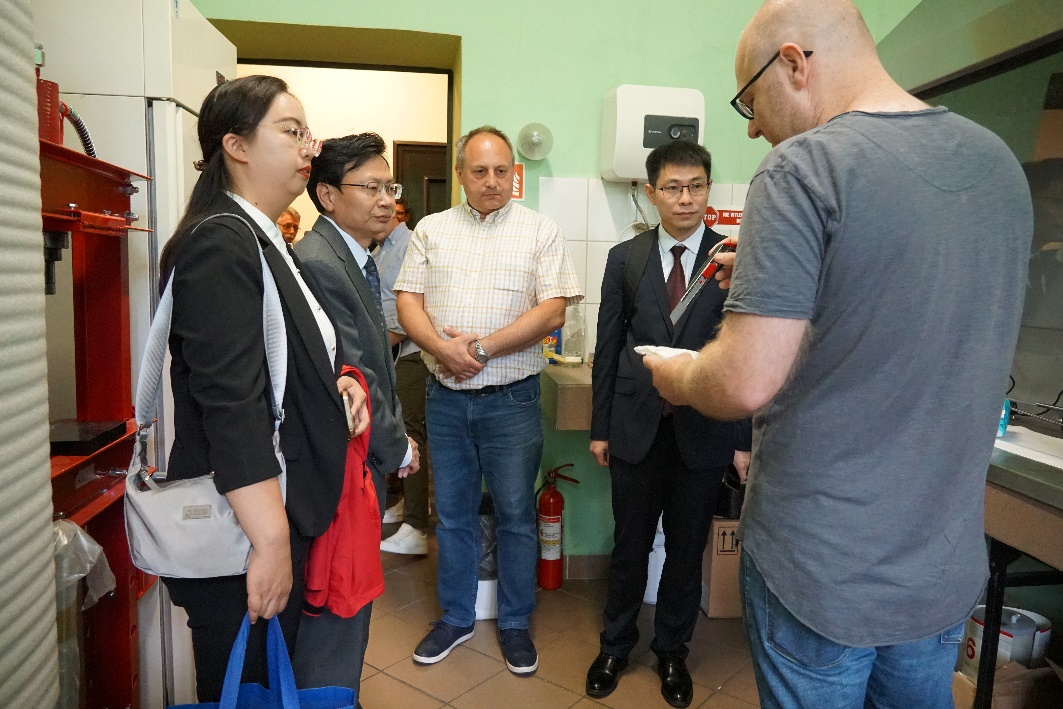在西里西亚技术大学访问期间,陈志国一行受到了西里西亚技术大学总务副校长Boguslaw Lazarz、国际合作处处长Grzegorz Klapyta、化学学院院长Krzysztof Walczak及化学学院教授代表等人的热情接待,两校就进一步推进人才培养、科学研究及国际合作与交流等方面展开探讨,并签订了相应合作协议。会后,代表团参观了西里西亚技术大学相关研究所、实验室及校企合作基地,并就学科专业建设、创新创业教学体系建设进行了深入的交流,为双方开展深度合作与交流奠定了良好的基础。
