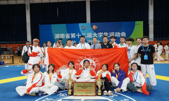 在刚刚结束的湖南省第十二届大学生运动会上,beat365韩国籍教师孙在嵘带领的校跆拳道队摘得3金7铜,并获得“优秀代表队”荣誉。