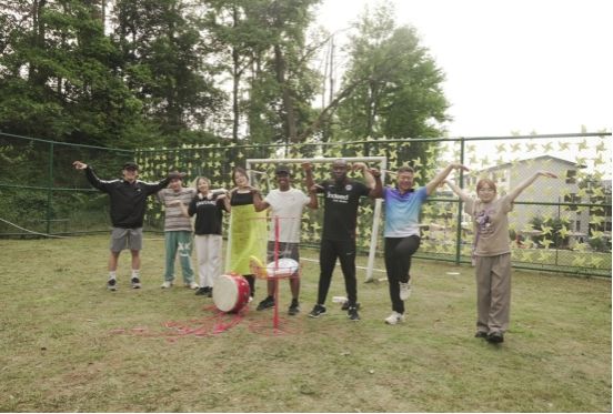 在参观结束后,大家被分成了三个团队,展开了一系列富有趣味性和挑战性的团队比赛项目。其中包括了合作颠球和飞盘等项目。无论是留学生、外籍教师还是中国学生,都积极融入团队,发挥各自的优势,相互配合,共同完成挑战。整个比赛过程中,现场气氛热烈,笑声不断。