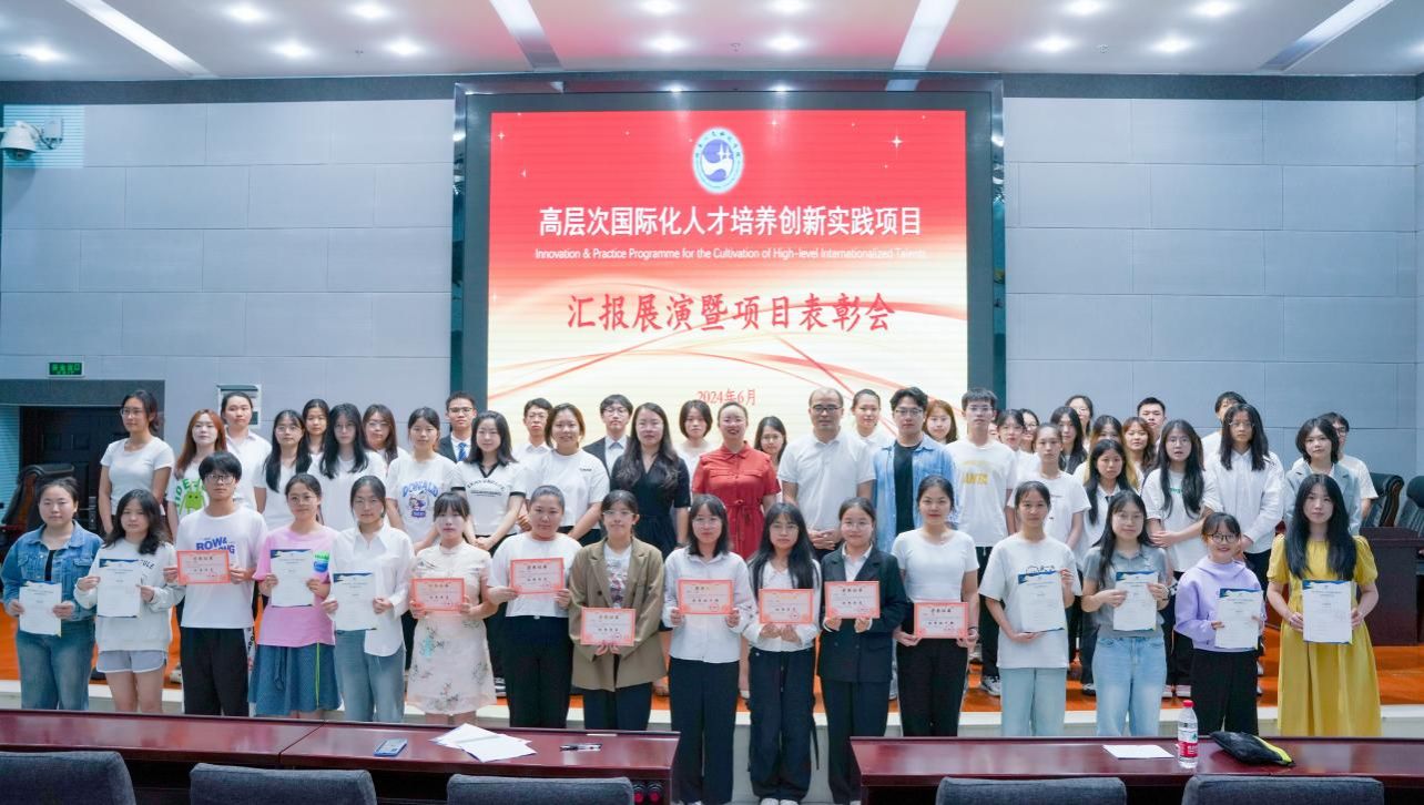 6月26日晚,beat365在图书馆第二报告厅举办2024年春季高层次国际化人才培养创新实践项目汇报展演暨评比表彰会。国际交流处教师代表和国际班全体学员参与。活动由外国语学院2022级英语专业刘思红同学主持。