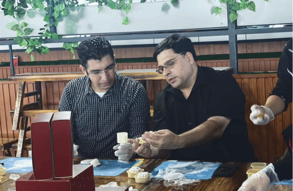 活动现场充满了热烈而亲切的气氛,其中手工制作月饼的环节尤为引人注目。外籍教师桑尼拿起自己制作的月饼,兴奋地说:“这是我亲手做的月饼,比超市买的更有意义。”这次活动让他深刻感受到了中国人对中秋团圆的渴望。来自印度尼西亚的留学生阿瑞莎·贝尔瓦也分享了他的感受,表示通过与中国师生一起制作月饼和交流节日习俗,他不仅感受到了家的温暖,还对中国传统文化有了更生动的认识。