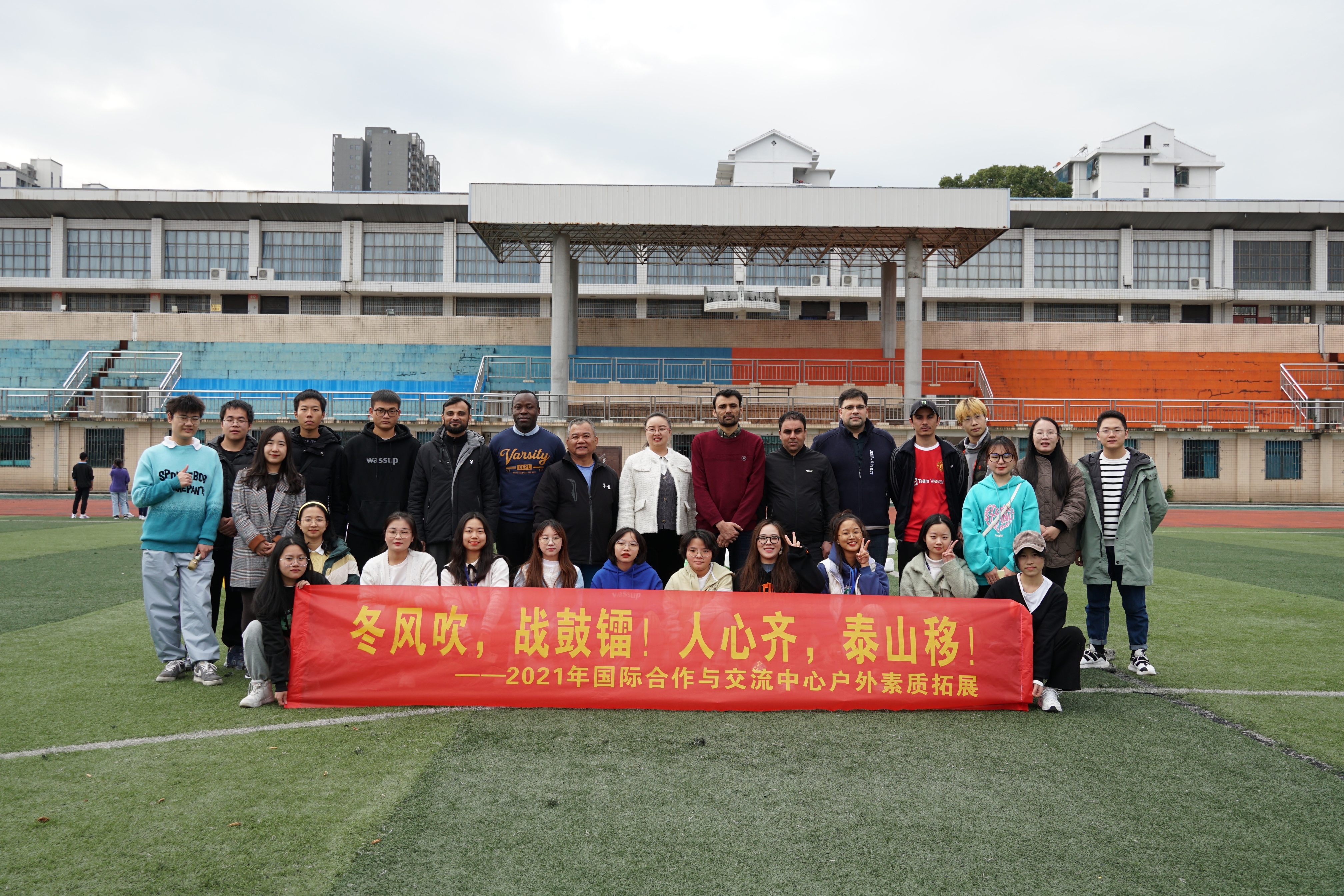 1110午,国际交流与合作中心(港澳台办)组织在校国境专家、留学生以及中外文化交流协会学生代表开展了户外素质拓展活动