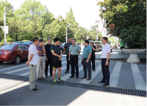 On August 26, Liu Heyun, the Party Secretary of HUHST, and Liu Tieming, HUHST Principle, inspect the preparatory work of the new semester with the heads of HUHST Party and Government Office, Logistics Infrastructure Office, Supervision Office, Student Work Office, Armed Security Office, Continuing Education College.
