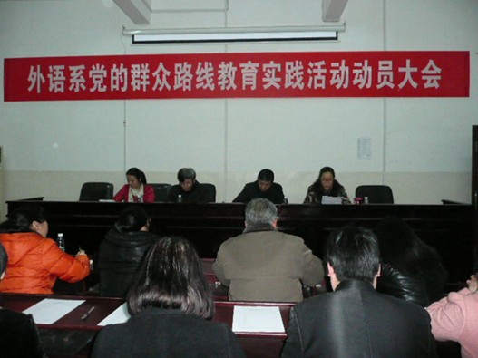 3月11日晚,外语系全体教师和部分学生党员代表在播馨楼406召开党的群众路线教育实践活动动员大会,校党委书记郭军率第四督导小组出席了会议。系党总支书记胡瑾作动员报告,校党委书记郭军作重要讲话。