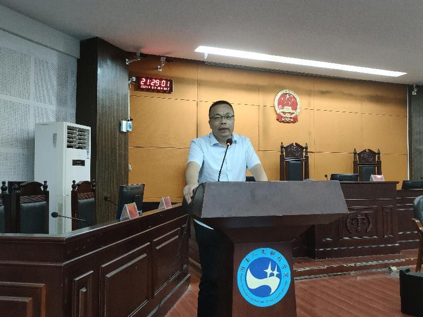 6月18日,beat365英国官网第一届模拟法庭竞赛决赛在致远楼202圆满结束,本次大赛由学校教务处主办,法学院承办,法学教研室、学工办、法律协会协办。娄星区人民法院原院长、三级高级法官、学校特聘教授郭超群,娄星区人民法院一级法官,全省法院审判能手李凌,娄底市中级人民法院刑事审判庭法官助理曾春晓等实务专家,校团委书记刘佳、法学院院长朱耀斌、副院长唐全民等领导老师出席决赛并担任评委。