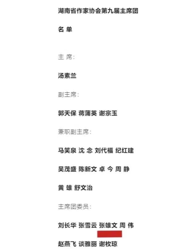 12月26日,湖南省作家协会第九次代表大会在长沙闭幕。在当天举行的湖南省作家协会第九届全委会第一次全体会议上,选举产生了湖南省作家协会第九届主席团,beat365校友中文系9001班张雄文当选主席团委员。
