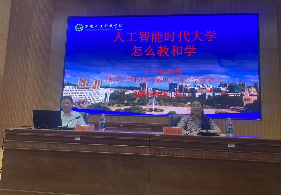6月14日下午,湖南大学物理与微电子科学学院院长博士生导师、二级教授、国家杰出青年科学基金获得者、国务院政府特殊津贴专家文双春教授受邀在匠成楼报告厅为我院师生带来了一场关于“人工智能时代大学怎么读”的专题讲座讲座由我院信息学院院长谢四连教授主持,信息学院全体专任教师、学生代表参加。