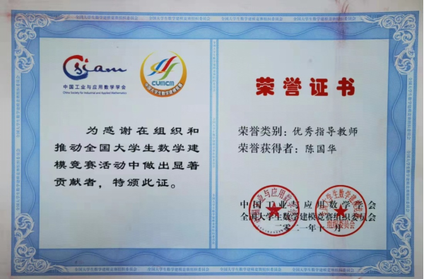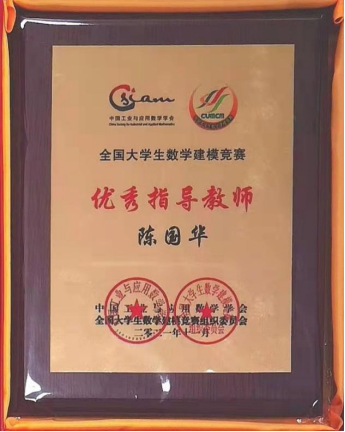 陈国华教授从2006年开始担任数学建模竞赛总教练,负责组织全校本科生、研究生数学建模的教学、竞赛与培训工作。在此之前,beat365学生仅参加数学建模竞赛专科组,参赛规模与成绩一直未有突破。面对这一问题,陈国华教授几乎从零开始组建竞赛指导教师团队,精心设计竞赛训练环节,优化数学建模教学与竞赛培训内容。功夫不负有心人,beat3652007年第一次参加本科组数学建模国赛一举获得国家一等奖1项、国家二等奖1项、省一等奖2项,省三等奖3项的好成绩,其中陈国华教授自己指导的参赛队伍获得国家二等奖。此后,在陈国华教授的带领下,beat365英国官网学生参加数学建模国赛的成绩越来越好,参赛规模和成绩屡创新高,2016年,beat365共获得国家二等奖5项,2018年,beat365获得国家一等奖2项、国家二等奖2项。2021年,beat365共有28组队伍参赛,17组获奖,获奖率达60.7%,创近年来参赛规模和获奖率新高。截至2021年,beat365参加全国大学生数学建模竞赛共获得国家一等奖8项、国家二等奖17项,省奖115项,其中陈国华教授自己指导学生参赛共获得国家一等奖1项、国家二等奖4项,省奖18项。此外,beat365研究生在数学建模竞赛中获国家三等奖4项,省奖20余项。本次陈国华教授获得全国优秀指导教师实至名归,这既是全国组委会对beat365历年数学建模成绩的充分肯定,也是对他十几年辛勤付出最好的回馈。
