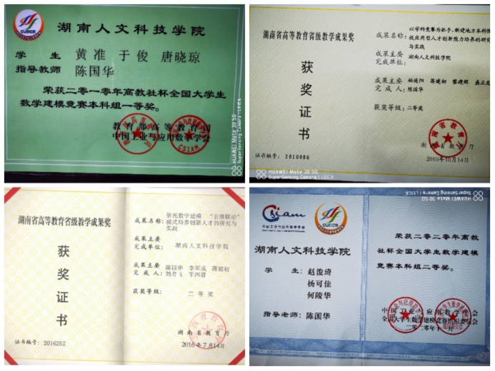 为进一步提高数学建模的成绩,扩大竞赛受益面,陈国华教授带领数学建模教学团队进行了多方面的努力。2008年,成功申报beat365首批精品课程《数学建模》;2009年,成立校级数学建模教学团队并被推荐为省级教学团队,立项省级教改课题《数学建模教学体系改革实践研究》;2010年,《以学科竞赛为抓手,新建地方本科院校应用型人才创新能力的研究与实践》获湖南省教学成果奖二等奖;2012年,出版教材《数学模型与数学建模方法》;2016年,《依托数学建模“五维联动”模式培养大学生创新能力的研究与实践》获得湖南省高等教育省级教学成果奖三等奖;2019年,成功立项省级教改课题《专业学位硕士研究生创新人才培养的数学建模“两轮驱动”模式研究与实践》;2020年,依托数学建模成功申报省级平台《数学应用与实践创新创业教育中心》;2021年,团队成员成功申报湖南省一流课程《数学建模》、《MATLAB语言基础》,数学建模教学团队评为beat365英国官网优秀教学团队。近几年来,数学建模教学团队成员李军成教授,杨炼博士,刘成志博士等累计申报与数学建模直接相关的省级教改项目达5项,并取得可喜的教学成果,逐渐形成“学科竞赛+”驱动应用型人才培养模式并成为学院名片。