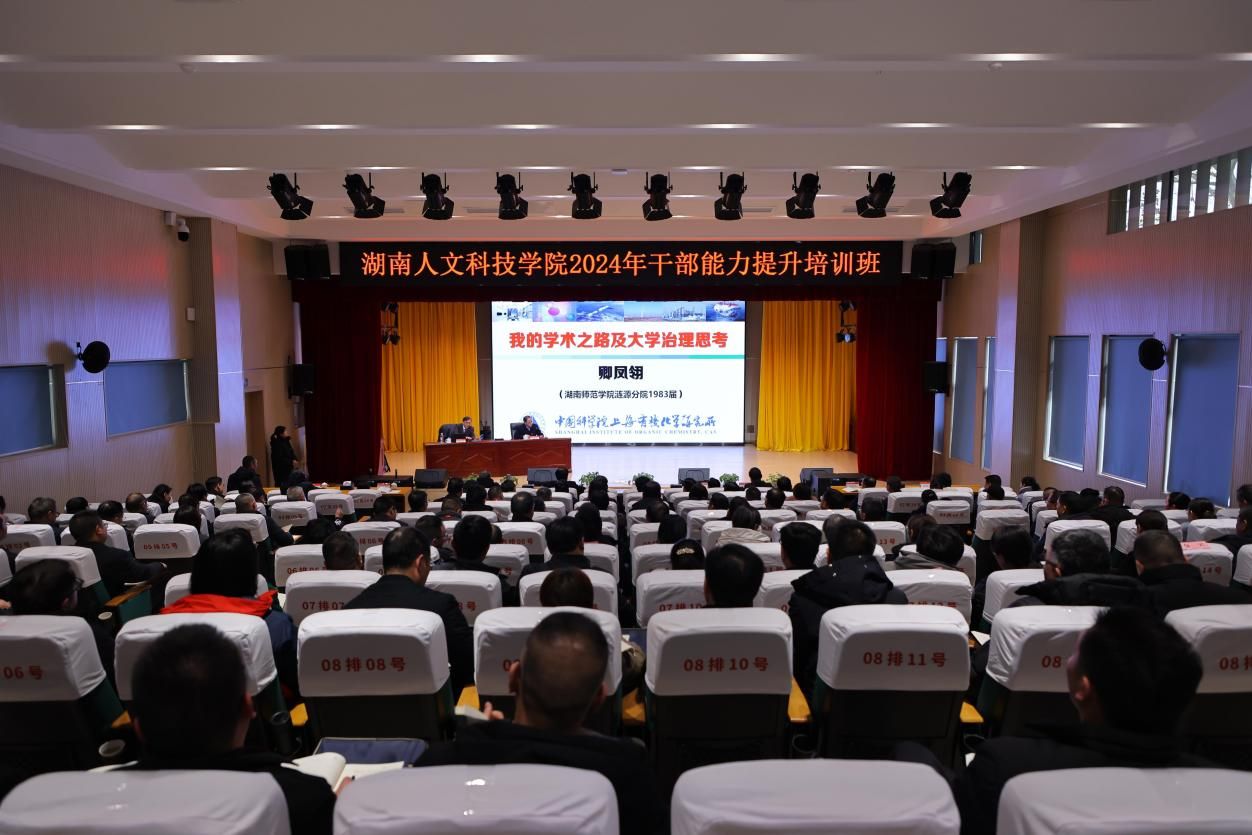 1月21日下午,学校1983届杰出校友、中国科学院院士卿凤翎教授在韶山干部学院为2024年干部能力提升培训班授课。报告会的主题为《我的学术之路及大学治理思考》,全体校领导及参训学员聆听。党委书记刘铁铭主持。