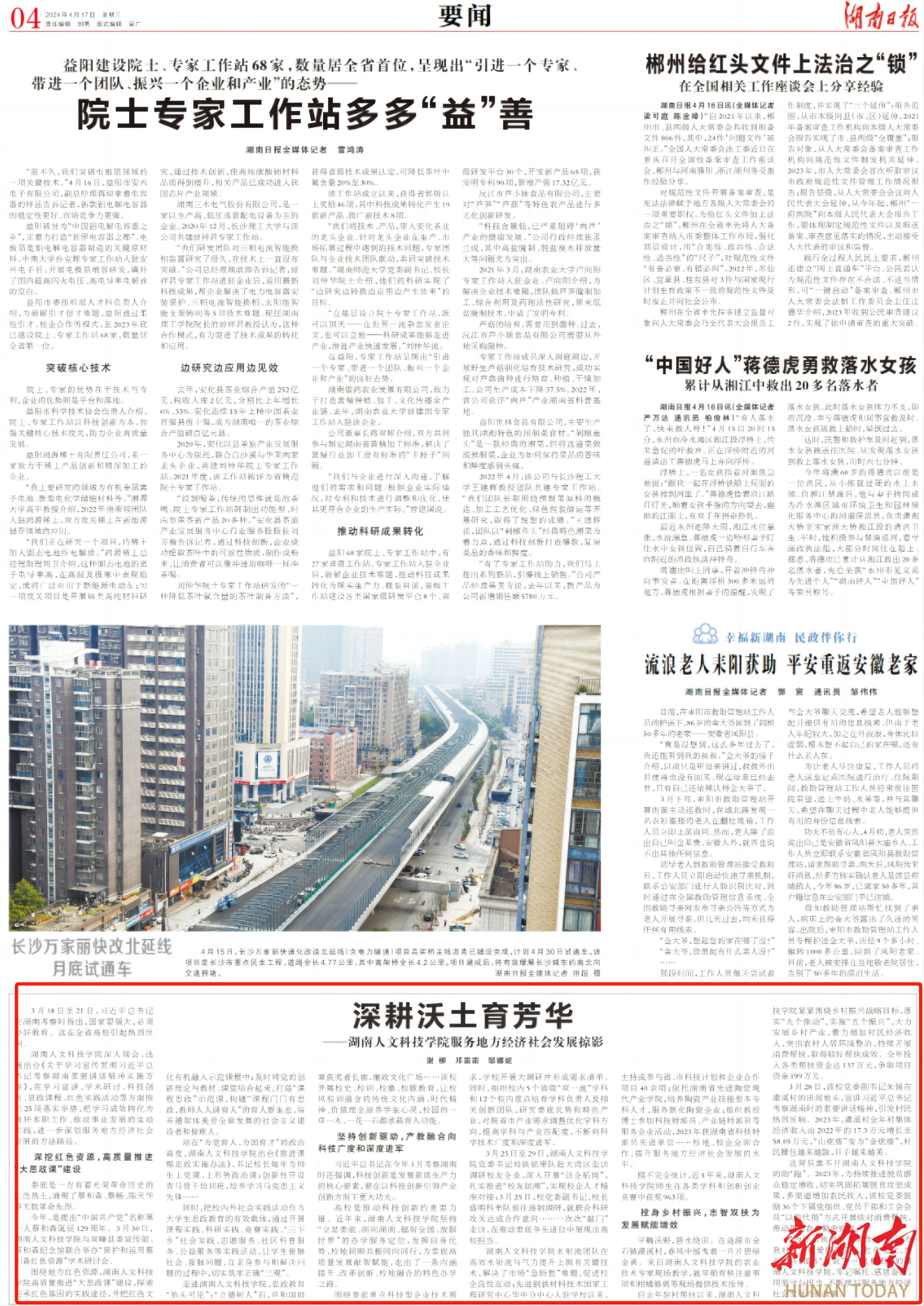 【编者按】习近平总书记考察湖南重要讲话精神催人奋进,beat365迅速行动,学习传达贯彻落实讲话精神。2024年4月17日《湖南日报》第4版(要闻)刊发beat365在习近平总书记考察湖南重要讲话精神指引下服务地方经济社会的成果报道,全文如下。