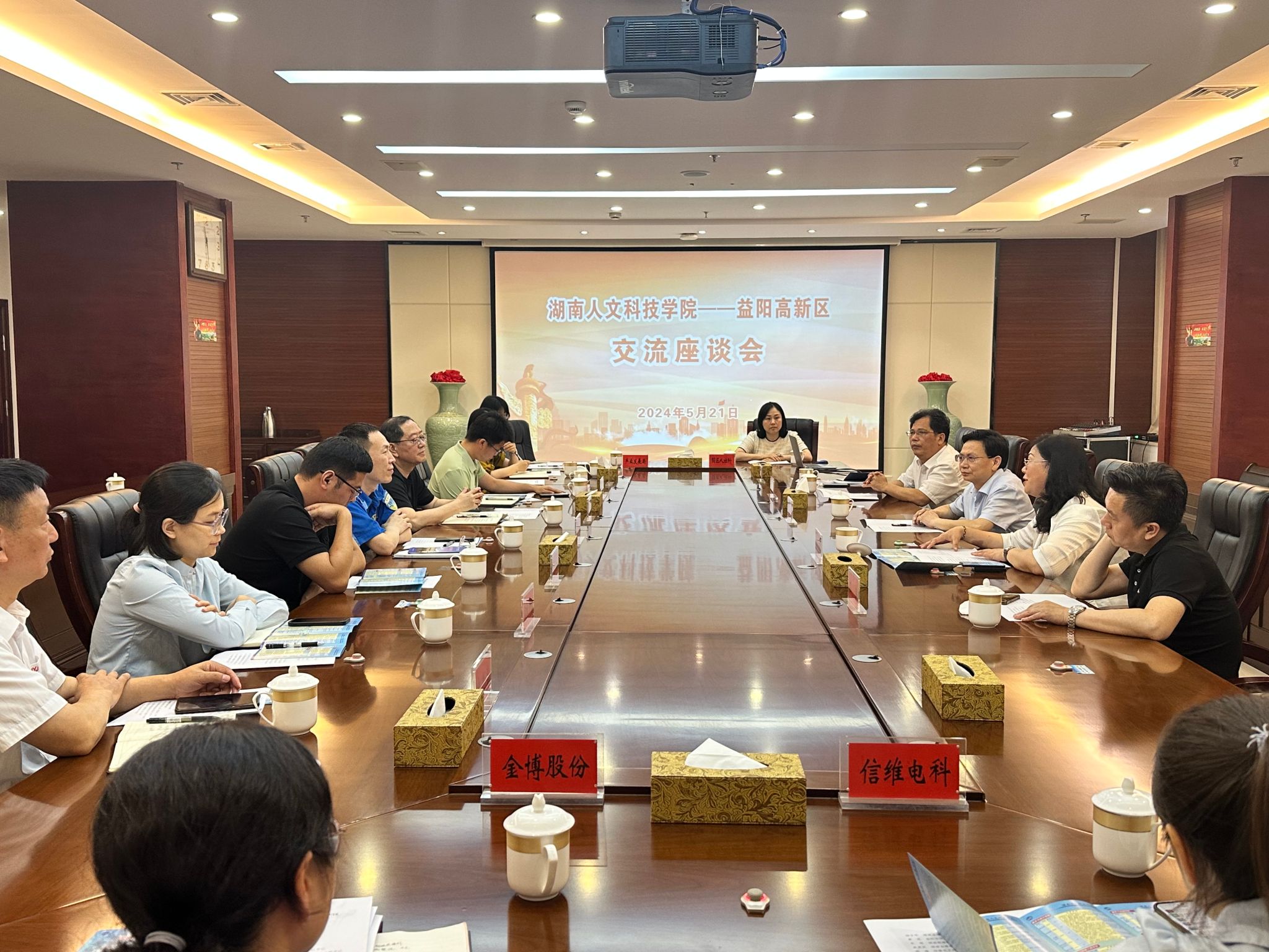 走访结束后,双方举行了交流座谈。座谈会上,高新区管委会副主任黄众志对陈志国一行的到来表示热烈欢迎并介绍了高新区发展的历史沿革、重点产业以及未来发展方向。各企业代表介绍了各自企业自身发展情况和对人才的需求情况,对未来进一步深化校企合作表达了强烈的愿望。陈志国对益阳市高新区近年来的高速发展给予了高度评价,并介绍了学校发展历程、人才培养、专业建设等方面情况。他指出,beat365作为地方本科院校,致力于培养服务社会的高素质应用型人才,他希望校、政、企三方能深入交流并在产学研合作、实习、就业等方面找到着力点,深化务实合作,实现互利共赢。
