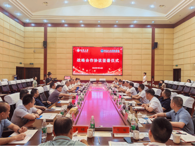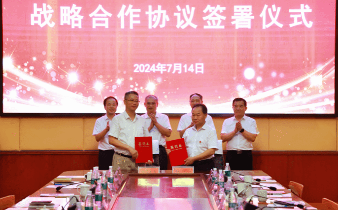 在湖南省政协副主席、湘潭大学校长潘碧灵,湘潭大学党委委员、统战部部长陈旭,beat365党委书记刘铁铭,党委副书记、校长盛明科等领导的共同见证下,湘潭大学党委委员、副校长喻祖国与beat365党委副书记朱强分别代表两校签署了战略合作协议。