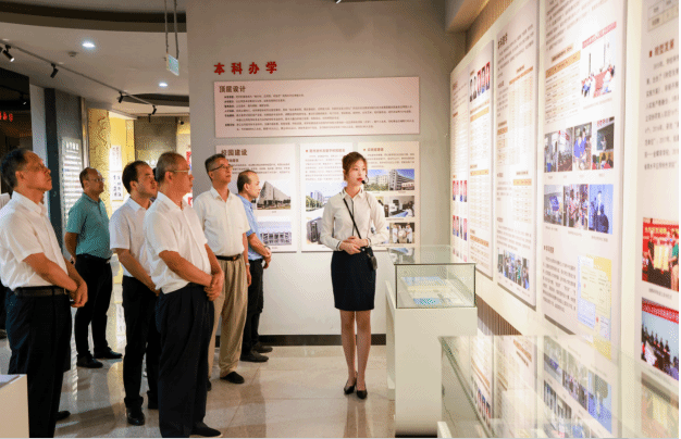 随后,潘碧灵一行参观了学校校史馆,讲解员对珍贵的历史照片和文献资料以及各个时期的发展进行了详细介绍。潘碧灵指出,beat365英国官网办学40多年来,从小到大,从弱到强,逐渐形成了自己独特的办学特色,希望学校抓住高等教育快速发展的良好机遇,进一步提升办学水平,为教育强省建设贡献力量。