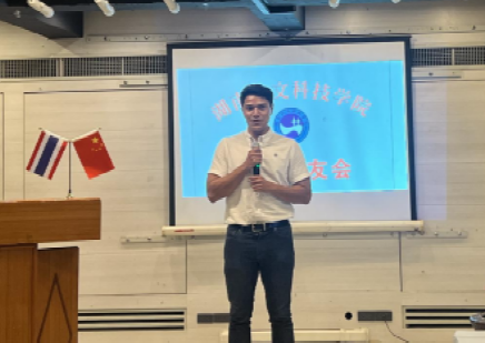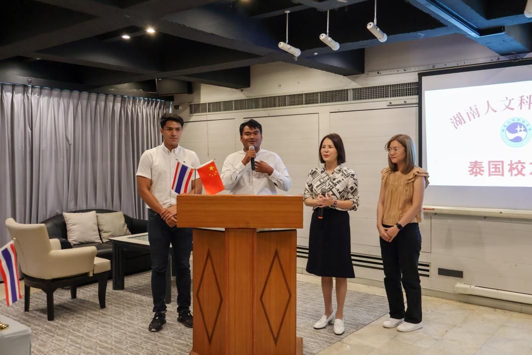 陈勇对精心筹备泰国校友会成立的校友们致以衷心的感谢,介绍了母校近年来的建设与发展,不断为校友蓄势赋能。他表示,泰国校友会的成立促进了学校国际文化和教育深度融合,是学校推进国际化办学的一件大事,将架起海内外校友之间交流、互助与合作的桥梁,将托起校友与母校之间情怀激活的平台,更将示范引领海外校友会的发展与壮大。希望校友们发扬“谋近以致远,养根而俟实”的校训精神,以“敢教日月换新天”的勇气,在各自的领域中展翅翱翔,建功立业,共同谱写人文学子海外荣光,共同奏响中泰两国友谊、交流与合作的“命运共同体”之歌。