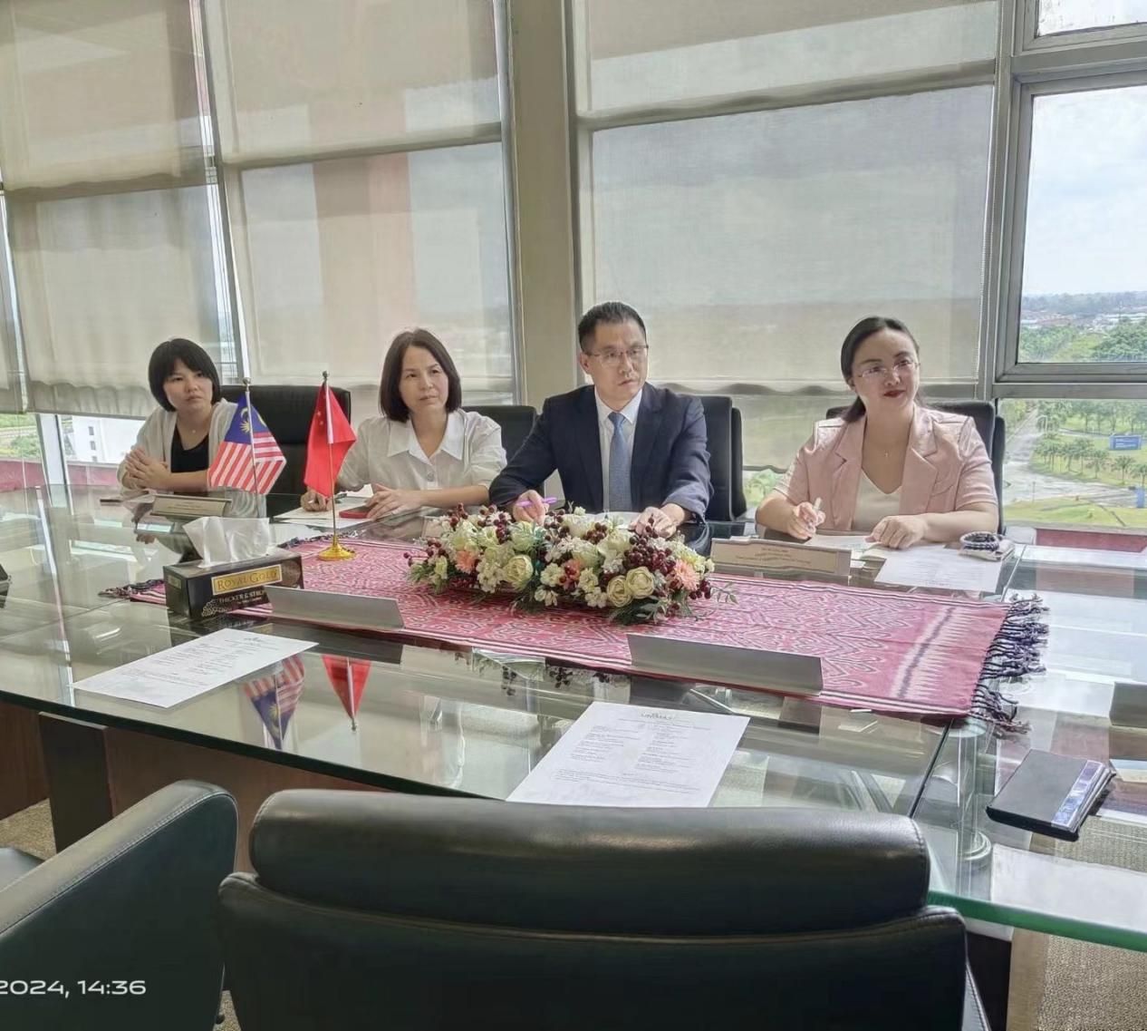 (与马来西亚沙捞越大学校长(右三)、副校长(左三)合影)