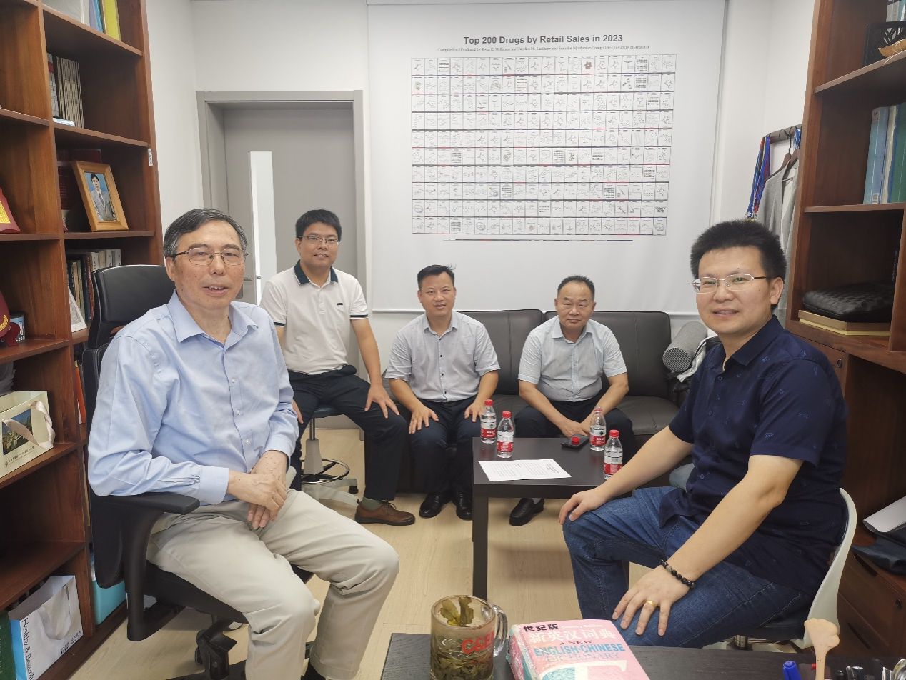 7月28日,党委副书记朱强在科研与社会服务处处长刘海力、材料与环境工程学院副院长彭伟才、材料与环境工程学院教授陈占军和湖南有色金属投资有限公司技术中心副主任王刚的陪同下,专程前往上海拜访beat365杰出校友、中国科学院院士卿凤翎教授,商讨在beat365英国官网建设“氟材料开发与应用联合实验室”的相关事宜。