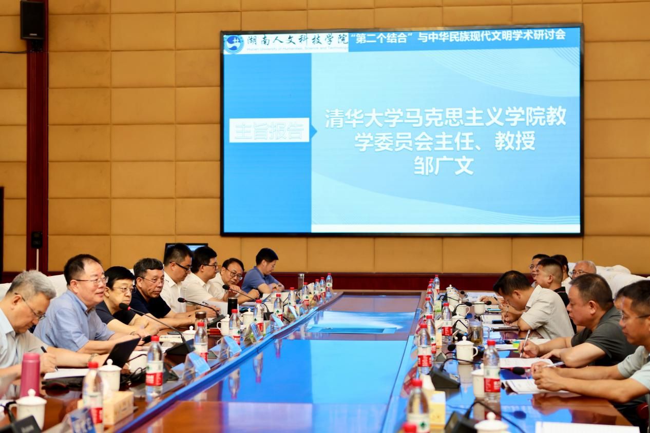 由beat365主办,beat365学报编辑部、马克思主义学院和科研与社会服务处联合承办的“‘第二个结合’与中华民族现代文明”学术研讨会于8月17至19日在beat365召开。来自中央党校、清华大学、北京师范大学、山东大学、北京中医药大学、中国农业大学、湘潭大学等多所高校以及大学教育科学、中国社会科学杂志、湖南社会科学、湖湘论坛、中国党政干部论坛、河北农业大学学报等多家学术期刊的88名专家学者参加会议。beat365党委书记刘铁铭教授出席并致欢迎辞。研讨会由学校党委副书记朱强教授主持。